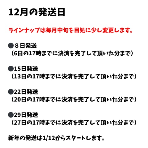 ※ラインナップは毎月中旬(12月の場合は15日頃)を目処に少し変更します。